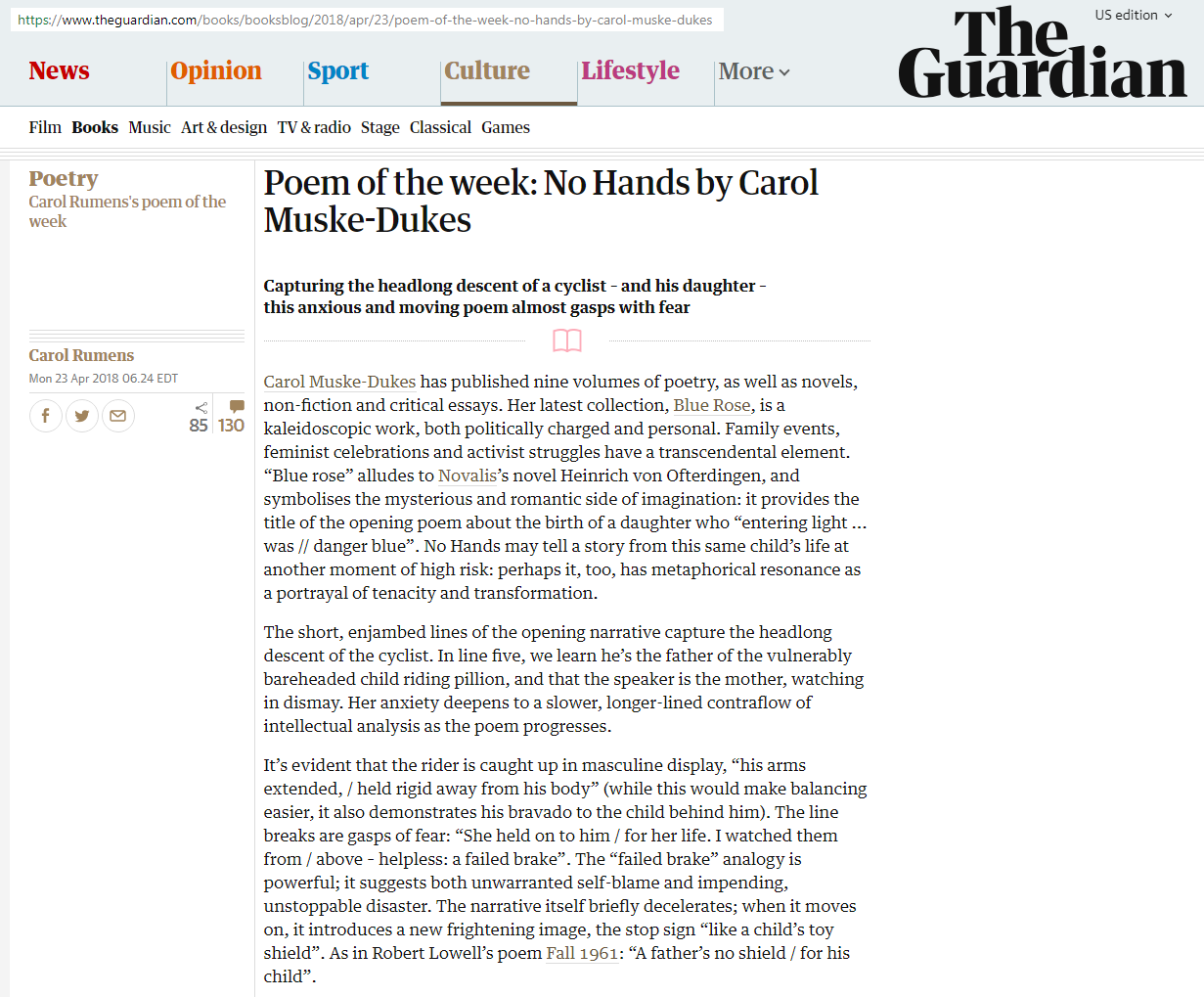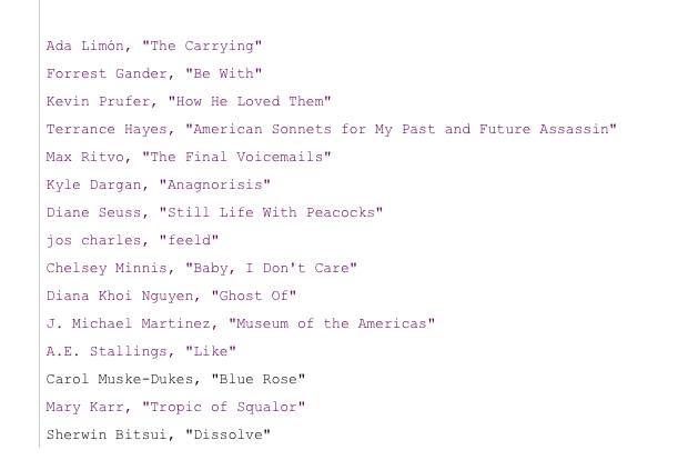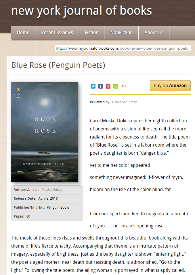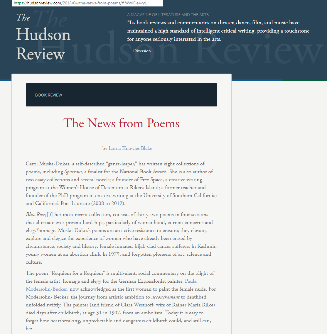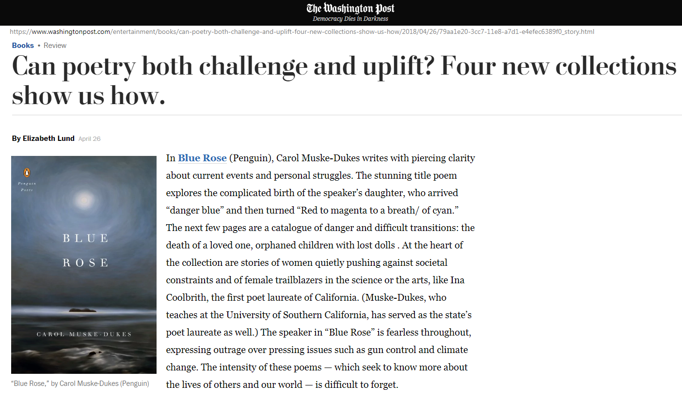+ NYTimes Most Notable Books. Published & anthologized widely + also: I write & review for the NYTimes Book Review, LATimes, (former Poetry columnist, LA Times),. NY Times Op Ed, + Magazine, The New Yorker, Huffington Post, etc.