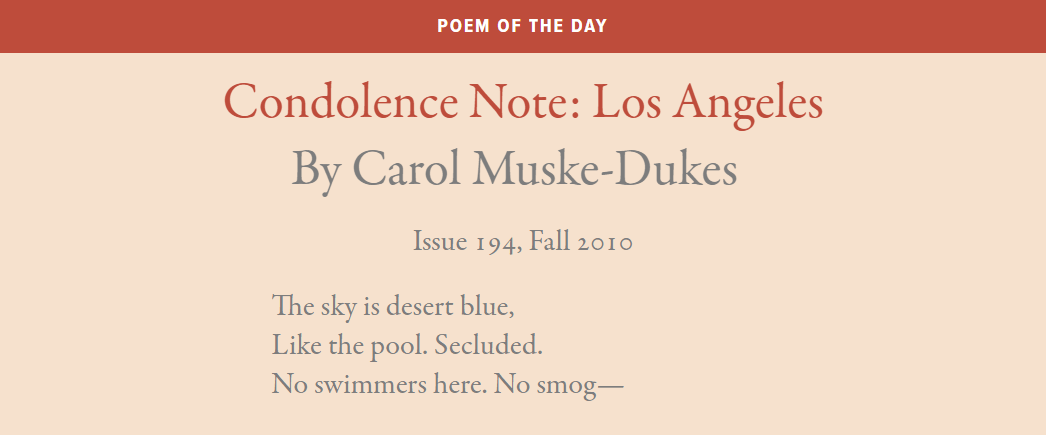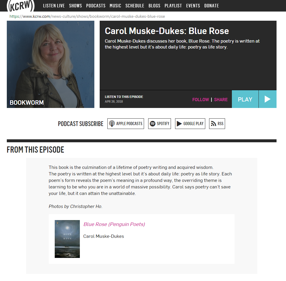 • Carol Muske-Dukes discussed the value of memorizing poetry on Southern California Public Radio. To listen to this interview, go here.