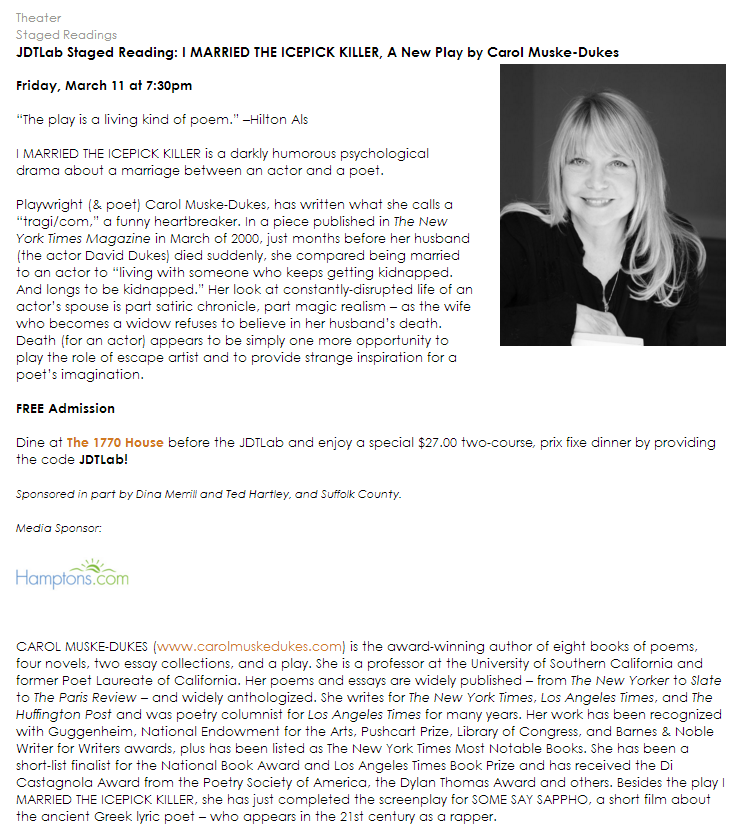 Carol Muske-Dukes will have a book signing at Hudson News (United Terminal, Los Angeles International Airport) on April 17, 2014 for National Poetry Month.